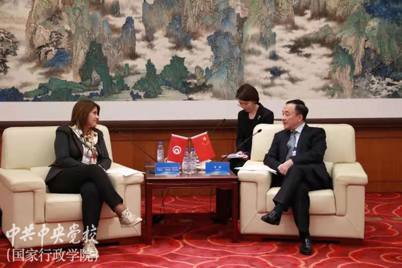 拉比迪感谢中方热情接待并重点介绍了突尼斯国家行政学院的职能职责及发展情况。她说,两校、院在人员培训、教学科研、决策咨询等方面有许多共同点,希望未来在远程教育、人员培训、学术交流等方面进一步加强双方的交流与合作。
