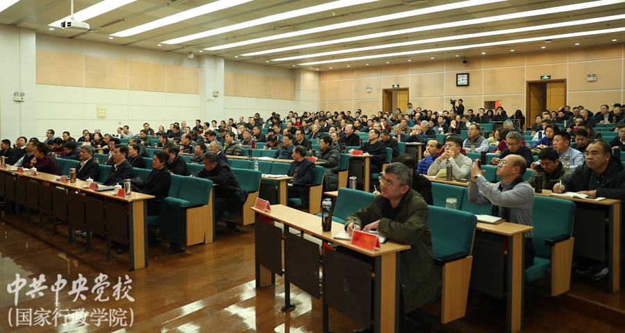 进修一部2019年秋季学期省部班“建设现代化经济体系”研究专题、省部班“战略思维与领导能力”研究专题,厅局班“推动构建人类命运共同体”研究专题、厅局班“全面依法治国”研究专题、厅局班“文化自信与文化建设”研究专题全体学员,进修一部主任樊秀萍、副主任郭可坤以及进修一部全体工作人员参加了报告会。