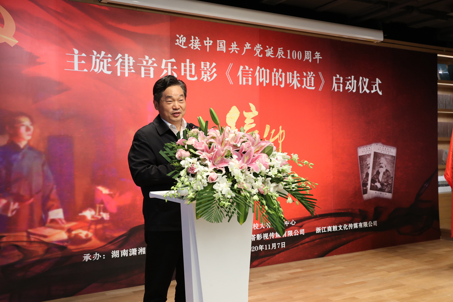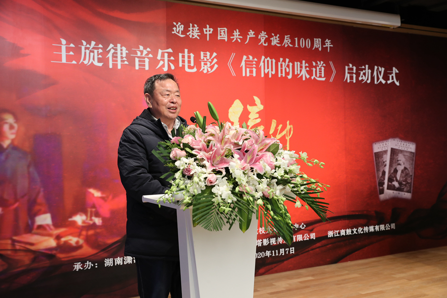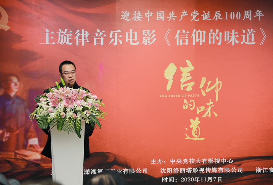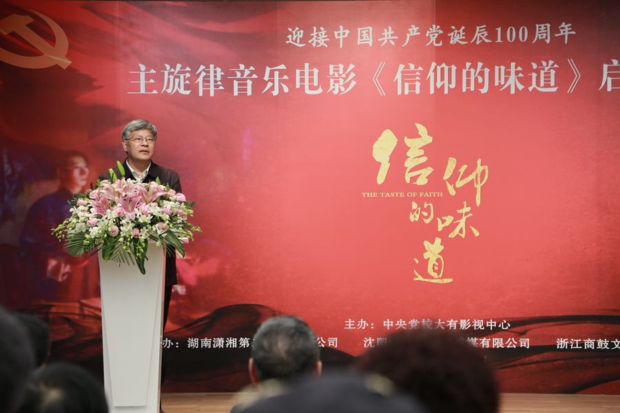 11月7日下午,主旋律音乐电影《信仰的味道》启动仪式在中央党校(国家行政学院)大有书馆举行。中央党校(国家行政学院)副校(院)长谢春涛,浙江省委宣传部副部长、省电影局局长葛学斌,辽宁省沈阳市委宣传部常务副部长安建晔,以及中央档案馆原副馆长、重大革命和历史题材影视创作领导小组成员杨公之,原国家广电总局电影局局长、重大革命和历史题材影视创作领导小组成员刘建中,中央党校(国家行政学院)中共党史教研部主任、教授罗平汉,中央党校出版集团总经理崔宪涛,中宣部电影剧本规划策划中心副主任秦振贵,中央戏剧学院教授、实验剧团团长孙亮,中央党校大有影视中心总经理王君等有关专家领导,影片导演周琦、总制片人张辉等主创人员参加了启动仪式。