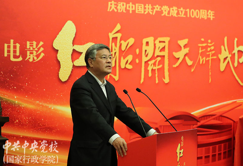 12月14日,庆祝中国共产党成立100周年献礼电影《红船:开天辟地》启动仪式在中央党校(国家行政学院)大有书局举行。中央党校(国家行政学院)分管日常工作的副校(院)长何毅亭,中央党校(国家行政学院)副校(院)长谢春涛,中国作家协会党组成员、副主席、书记处书记阎晶明,中国电影家协会分党组书记、驻会副主席张宏,浙江省委宣传部副部长、省电影局局长葛学斌,河北省委宣传部副部长、省电影局局长史建伟等领导出席启动仪式并讲话。