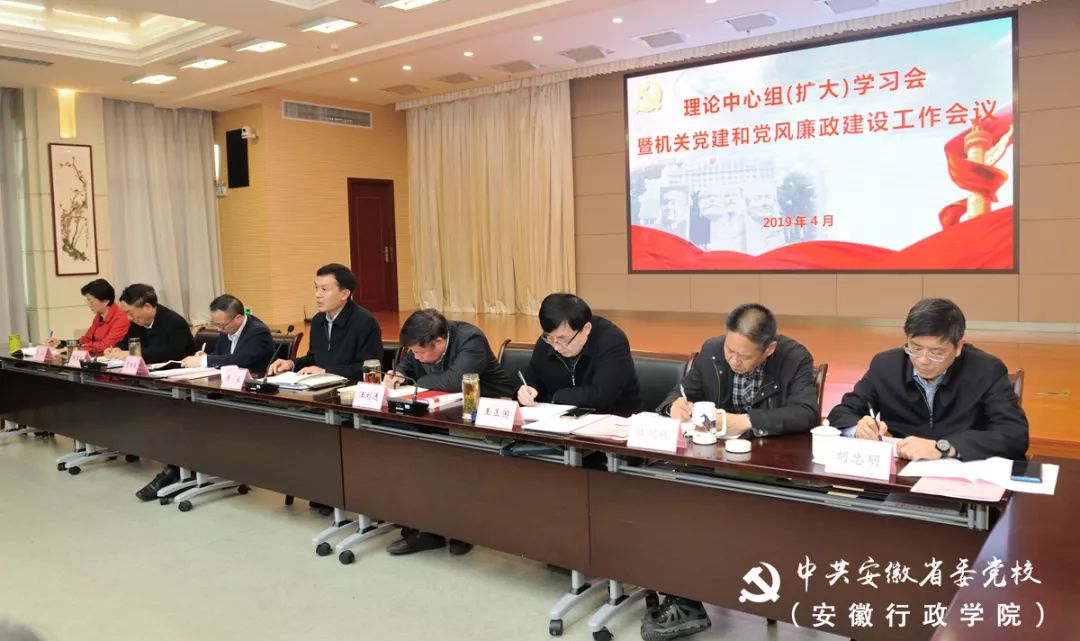 4月4日,省委党校(安徽行政学院)召开理论中心组(扩大)学习会暨机关党建和党风廉政建设工作会议。常务副校(院)长张永主持会议并讲话。校(院)领导,副教育长,各处室、直属单位主要负责人参加会议。