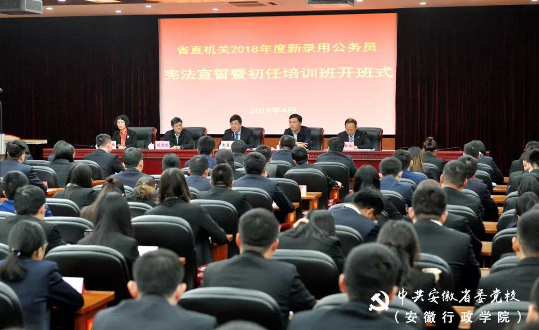 4月15日,省委党校(安徽行政学院)第25期初任公务员培训班在中校区举行开班式。省委组织部副部长、省人才办主任朱春旭到会讲话。常务副校(院)长张永致辞,教育长胡忠明、教务部、进修二部等处室负责人、组织员和培训班全体学员参加。省委组织部公务员考录培训处处长宋书岭主持。