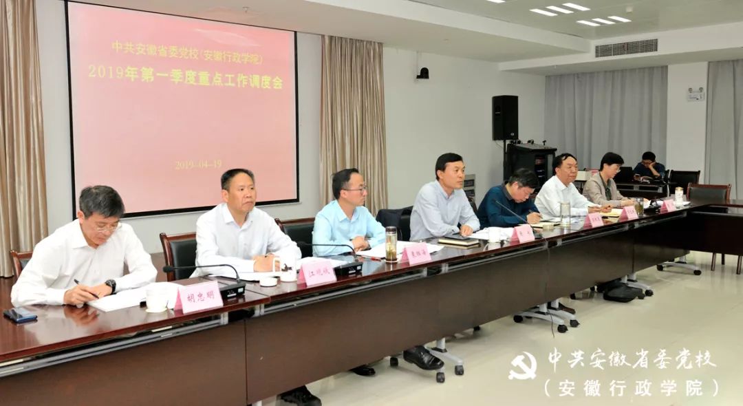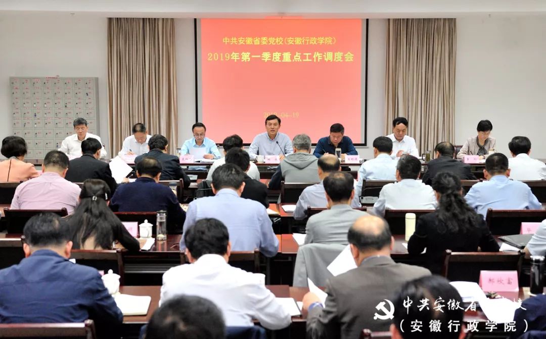 4月19日下午,省委党校(安徽行政学院)召开一季度重点工作调度会,总结交流工作,分析研判形势,推进任务落实。常务副校(院)长张永主持会议并讲话。校(院)其他领导,副教育长,各处室、直属单位主要负责人参加会议。