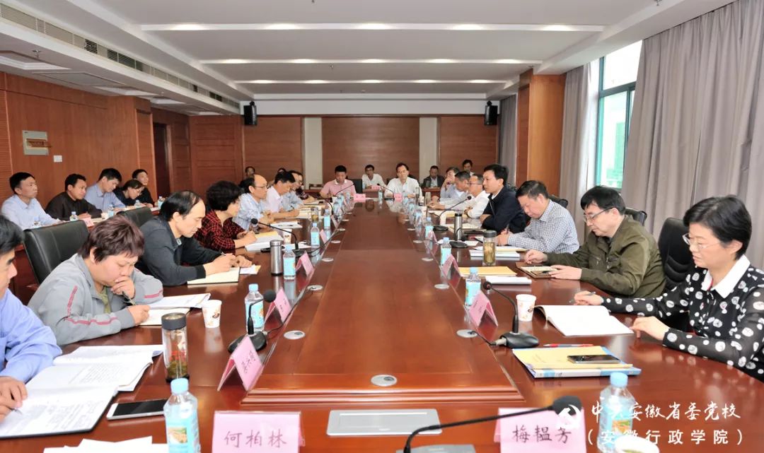5月15日下午,省委党校(安徽行政学院)、安徽经济管理学院召开中心组学习会暨加强学生思政工作座谈会。校(院)领导张永、汪刘送、袁维海、王正国、江观伙、童玲、胡忠明出席,有关处室、直属单位负责人,思政课教师和辅导员代表参加会议。