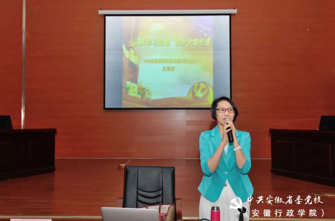 5月22日,省委党校(安徽行政学院)学党章专题辅导报告会在西校区举行,生态文明教研部副主任、教授吴梅芳作题为《认真学习党章 维护党章权威》报告。机关党委专职副书记陈春雨主持报告会,学历系部教职工和学生党员、驻西校区各处室党员、各党支部党务工作者共260余人聆听了报告。