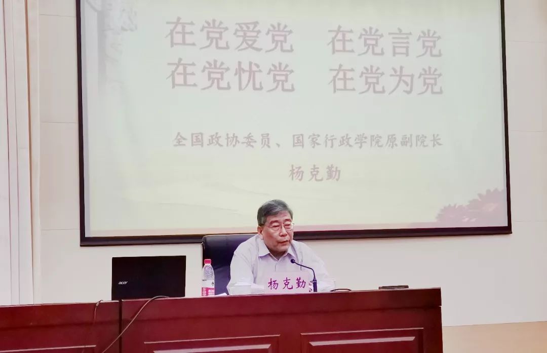 5月24日上午,全国政协委员、原国家行政学院副院长杨克勤应邀来省委党校(安徽行政学院),为主体班学员作了题为“在党爱党 在党言党 在党忧党 在党为党”的专题报告。教育长胡忠明主持报告会。