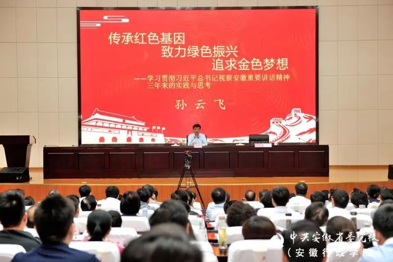 孙云飞在报告中围绕六安特有的红色记忆坚定传承红色基因、围绕六安特别的绿色资源坚定致力绿色振兴、围绕六安特殊的金色使命坚定追求金色梦想等内容为主题,深刻阐释了习近平总书记视察安徽、视察六安重要讲话精神在老区贯彻落实情况,以及三年来的实践与思考。