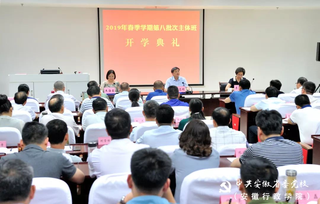 6月10日下午,省委党校(安徽行政学院)2019年春季学期第八批次主体班举行开班式,教育长胡忠明出席并讲话。教务部、进修一部负责同志和主体班全体学员参加。
