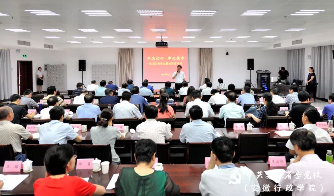 6月25日至7月5日,省委党校(安徽行政学院)“不忘初心、牢记使命”主题教育读书班,利用10天时间,聚焦学习贯彻习近平总书记关于“不忘初心、牢记使命”的重要论述,集中开展学习研讨。在省委第十一巡回指导组的有力指导下,读书班共开展了6次理论学习专题辅导、8次专题研讨,1次党课报告,校(院)领导班子全体成员和部分处室、直属单位主要负责人等27名同志作了交流发言,切实发挥了示范引领作用,推动校(院)主题教育往深里走、往心里走、往实里走。