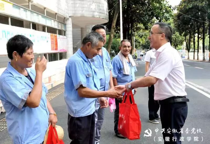 炎炎夏日,酷热难当。省委党校(安徽行政学院)领导张永、汪刘送、袁维海、邓玉明、江观伙、童玲,集中看望慰问了坚守岗位的教职工和奋战在重点项目一线的劳动者们,向他们致以亲切问候,送去夏日“清凉”。