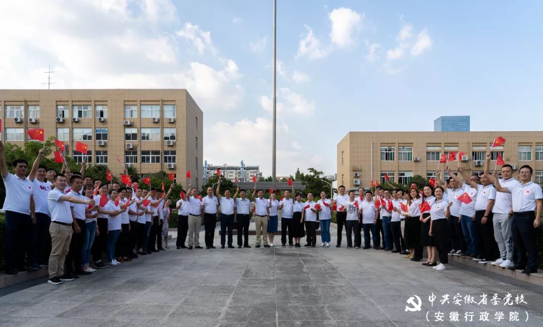 “我和我的祖国,一刻也不能分割,无论我走到哪里,都流出一首赞歌……”拍摄当天,中央党校在职研究生2018级(安徽班)全体学员按照分组,从省委党校(安徽行政学院)中校区大门、教室、图书馆、报告厅等地汇聚到国旗下,挥动起手中的小国旗,一同放声高歌《我和我的祖国》。现场气氛欢快热烈,深情的歌唱表达了学员们对祖国的热爱之情和美好祝福。在操场,学员们拼出“70”图案,汇聚成一幅动人画卷,庆祝中华人民共和国成立70周年,体现了学员们对祖国最深沉的爱。