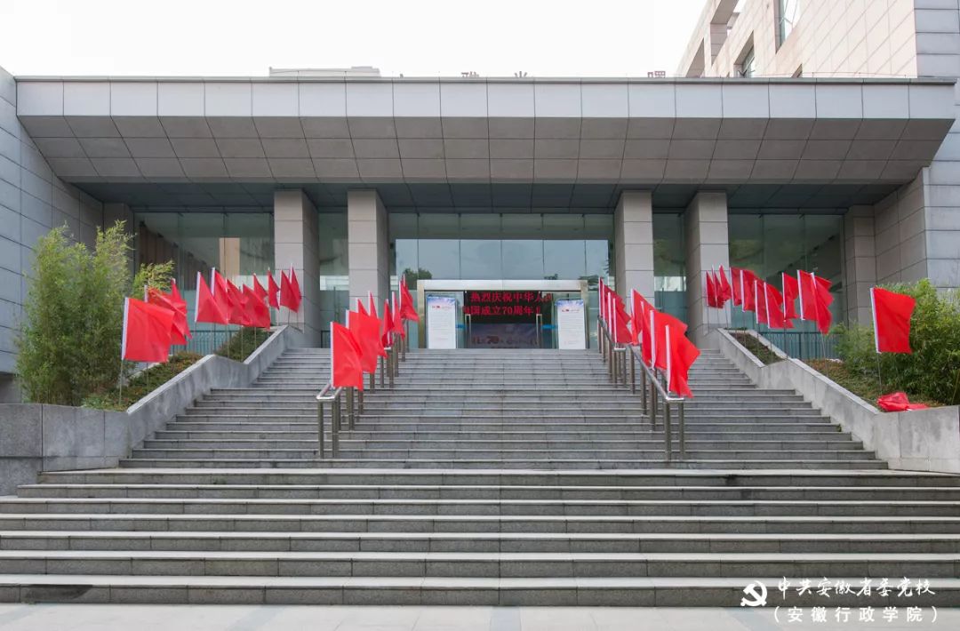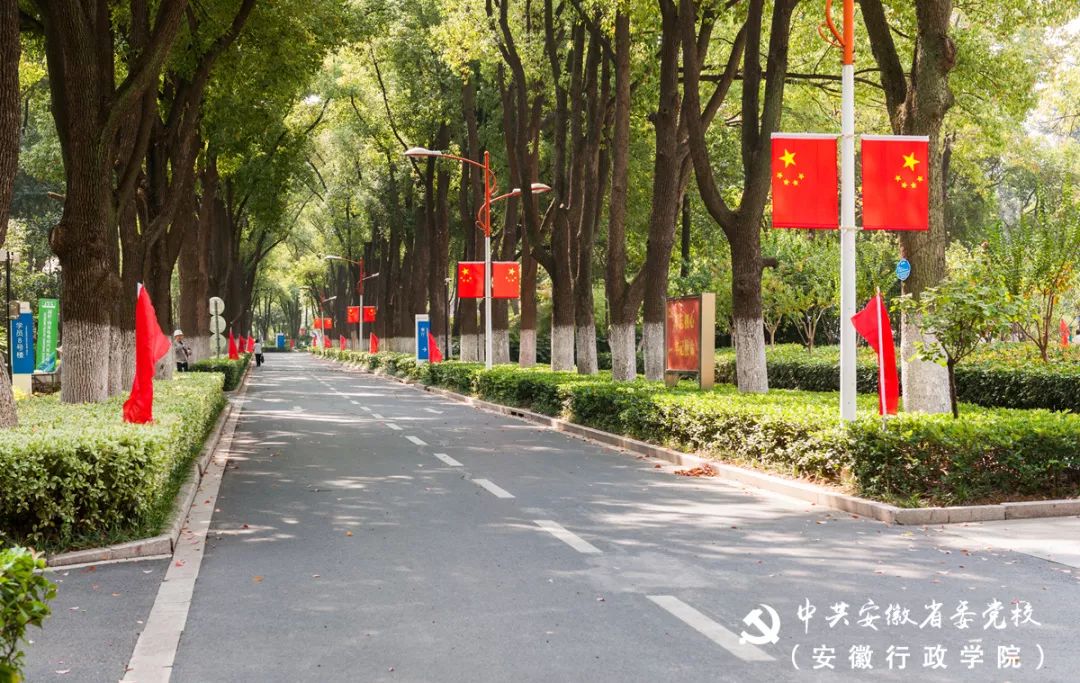 五星红旗迎风飘扬,大红灯笼高高挂起,道路两旁红旗招展,橱窗标语引人注目……省委党校(安徽行政学院)各校区装点一新,处处洋溢着喜迎国庆佳节的欢乐、祥和氛围。