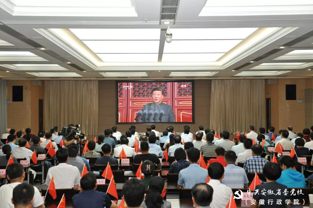 10月1日上午,庆祝中华人民共和国成立70周年大会在北京天安门广场隆重举行。中共中央总书记、国家主席、中央军委主席习近平发表重要讲话。省委党校(安徽行政学院)组织教职工在校(院)本部集中收看了大会现场直播。