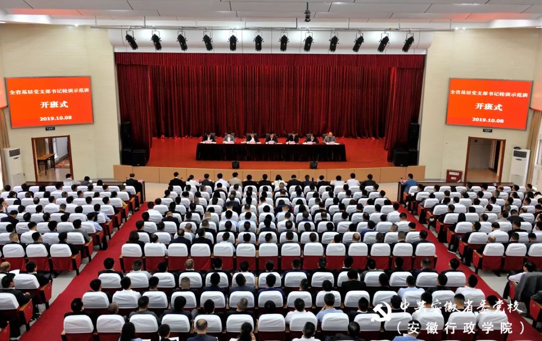 10月8日,全省基层党支部书记轮训示范班在省委党校(安徽行政学院)举行,3个示范培训班的全体学员参加开班式。