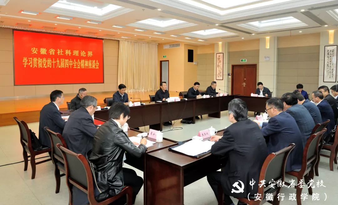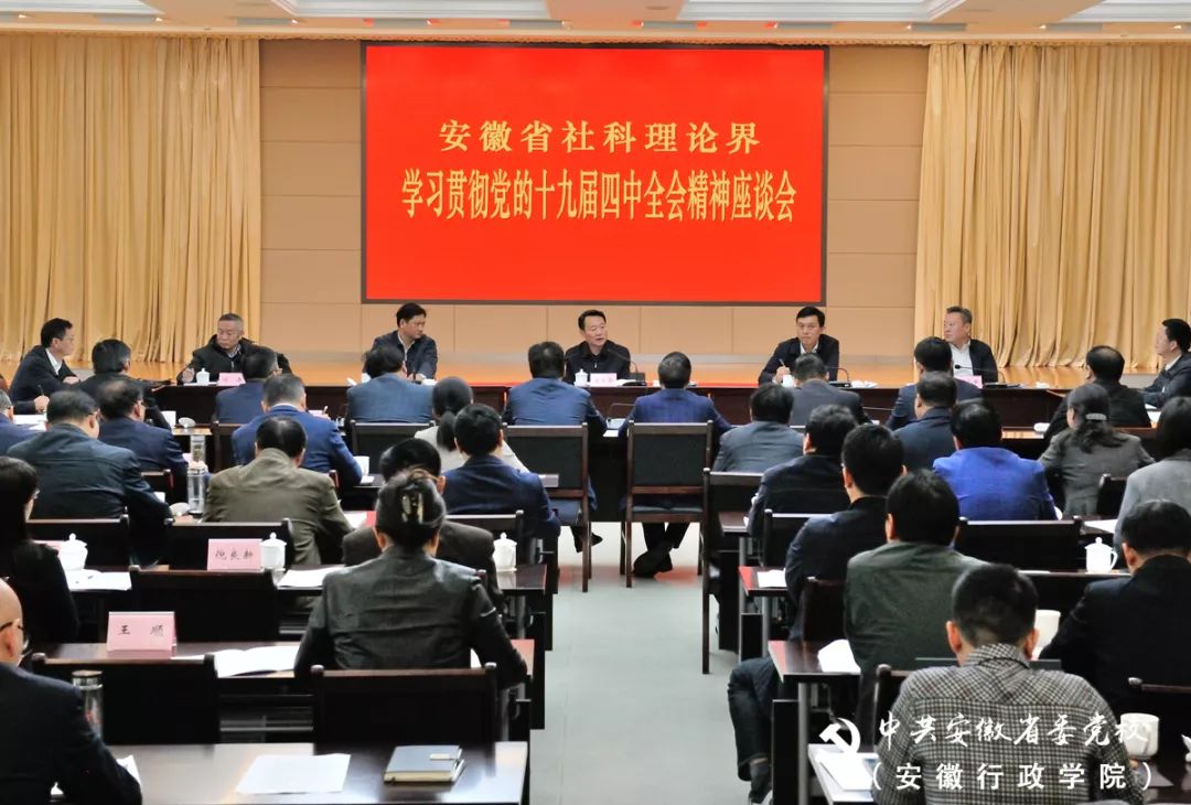 11月6日上午,安徽省社科理论界学习贯彻党的十九届四中全会精神座谈会在省委党校(安徽行政学院)召开。省委常委、宣传部长虞爱华出席并讲话。