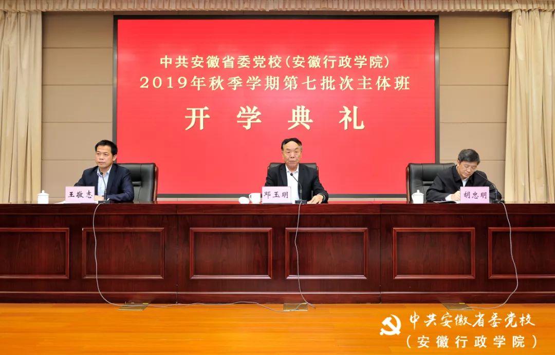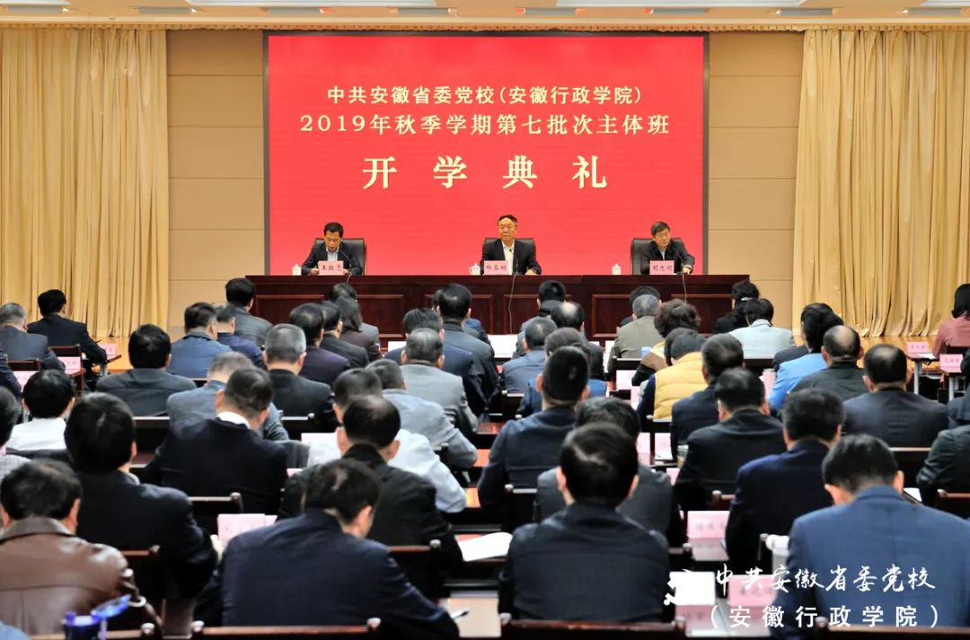 11月11日,省委党校(安徽行政学院)举行2019年秋季学期第七批次主体班开学典礼。副校(院)长邓玉明出席并讲话,教育长胡忠明宣读教学计划,副教育长王敬志主持。
