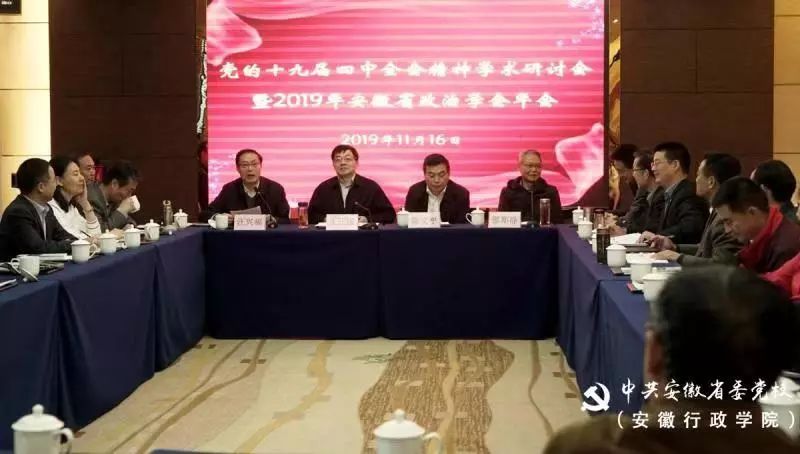 11月16日,党的十九届四中全会精神学术研讨会暨省政治学会2019年年会在绩溪召开。省委党校(安徽行政学院)副校(院)长、省政治学会会长王正国出席并致辞,省委党校(安徽行政学院)马克思主义学院院长、省政治学会秘书长汪兴福主持,来自省直有关单位、省内高校和省市县党校的50多名专家学者参加。
