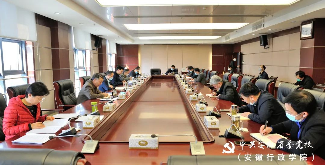 3月20日上午,省委党校(安徽行政学院)召开理论中心组学习会,传达学习习近平总书记在十九届中央纪委四次全会上的重要讲话和中央及省委有关文件、会议精神。常务副校(院)长张永主持。校(院)领导汪刘送、袁维海、王正国、邓玉明、江观伙、童玲、胡忠明,副教育长和有关处室主要负责人参加会议。