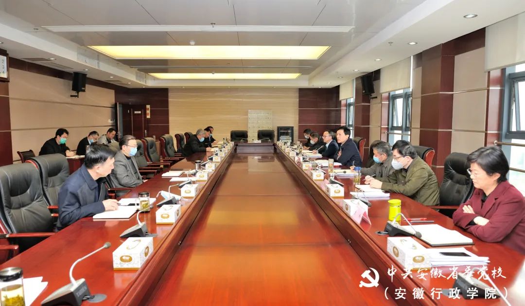 3月25日上午,省委党校(安徽行政学院)召开理论中心组学习会,专题学习研讨习近平总书记在决战决胜脱贫攻坚座谈会上的重要讲话及省委有关会议、文件精神。常务副校(院)长张永主持,校(院)领导汪刘送、袁维海、王正国、江观伙、童玲、胡忠明,副教育长和有关处室负责人参加会议。
