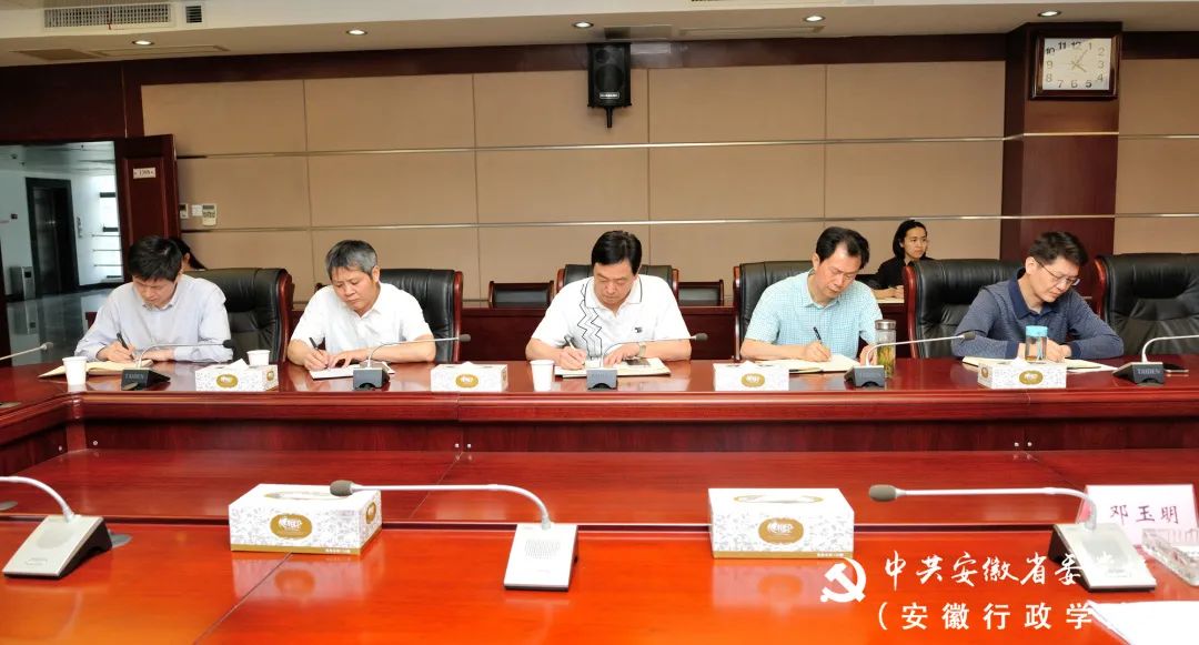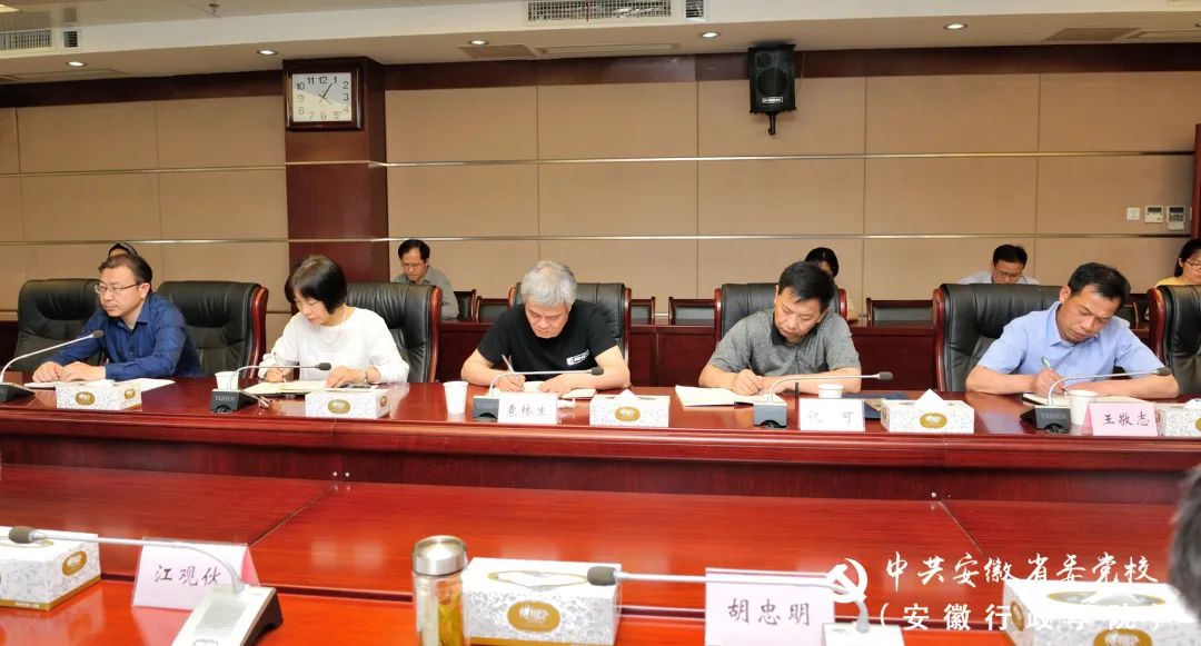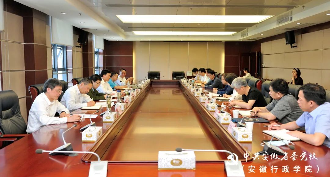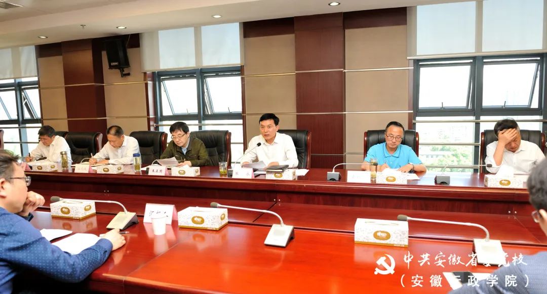 5月18日,省委党校(安徽行政学院)召开校(院)委会会议,传达学习省委常委会会议精神,研究贯彻落实意见。常务副校(院)长张永主持,校(院)领导袁维海、王正国、邓玉明、江观伙、胡忠明,副教育长及有关处室负责人参加会议。