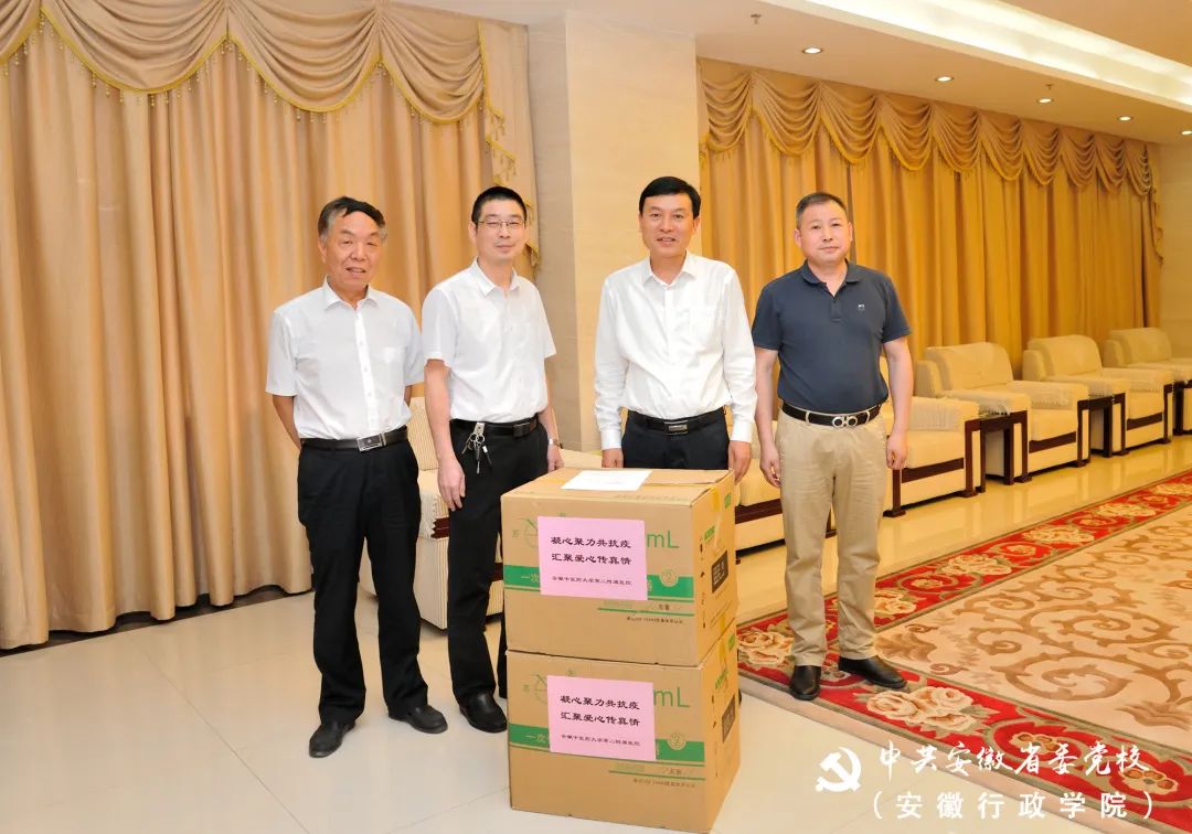 5月26日,安徽省针灸医院党委副书记蔡杰、纪委书记韩加生一行来到省委党校(安徽行政学院),向全体教职工和学员捐赠了一批中药香囊。常务副校(院)长张永、一级巡视员邓玉明代表校(院)接受捐赠。