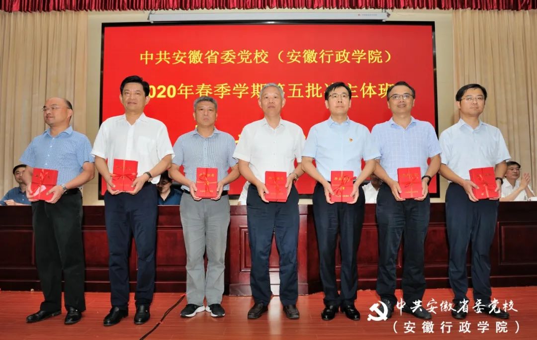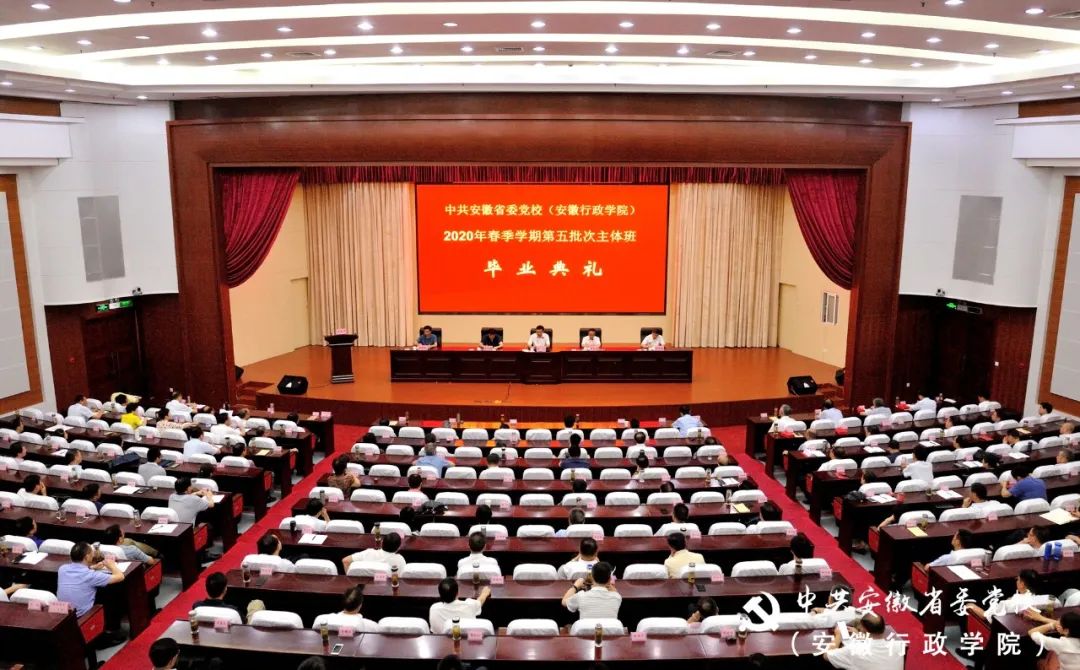 8月14日上午,省委党校(安徽行政学院)举行春季学期第五批次主体班毕业典礼。校(院)领导张永、袁维海、王正国、胡忠明、王林武出席,第76期市厅级干部进修班、第68期县处级干部(经济发展、社会治理)进修班、第30期县处级宣传干部进修班、第18期选调生进修班全体学员和相关处室主要负责人参加毕业典礼。