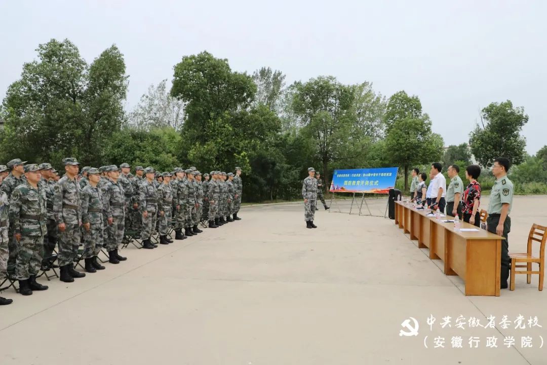 9月20日下午,省委党校(安徽行政学院)第48期中青年干部培训班国防教育在陆军炮兵防空兵学院西校区开训。校(院)常务副校(院)长张永、学院副政委杨友田大校出席并讲话,副教育长王敬志主持,中青班全体学员和两校院有关部门负责人参加开训式。
